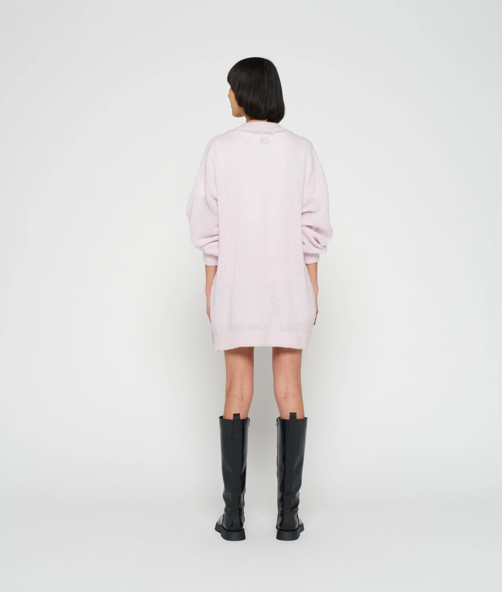 Relaxed Fit Cardigan, aus einem feinen Alapaka-Wollmix gefertigt. Mit breiten Rippstrick-Bündchen am Halsausschnitt, an den Ärmelabschlüssen und am Saum und einer „10“-Monogramm-Stickerei auf dem Rücken.