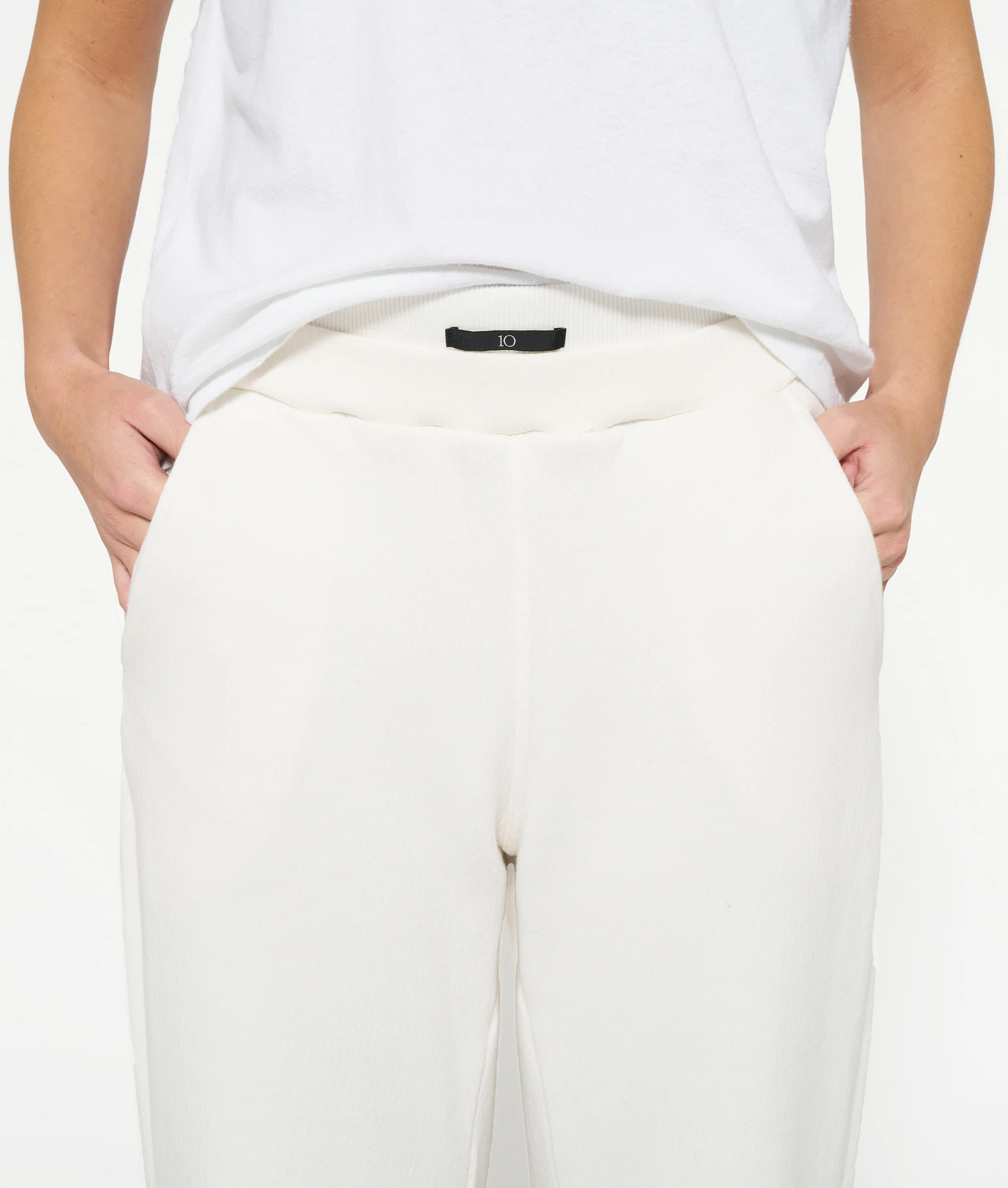 Relaxed Fit Jogger aus Waffelpikee aus Baumwolle. Mit doppeltem Rippstrickbund mit „10”-Label, schrägen Einschubtaschen, tiefem Schritt, schräger Naht auf Kniehöhe und aufgesetzter Gesäßtasche mit zwei Fischgrätstreifen.