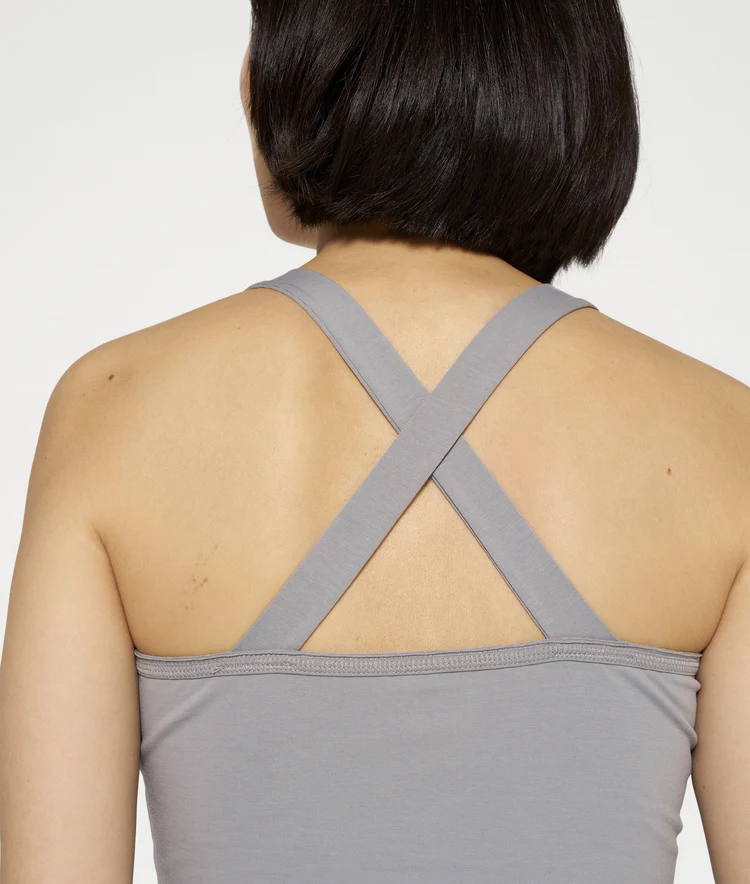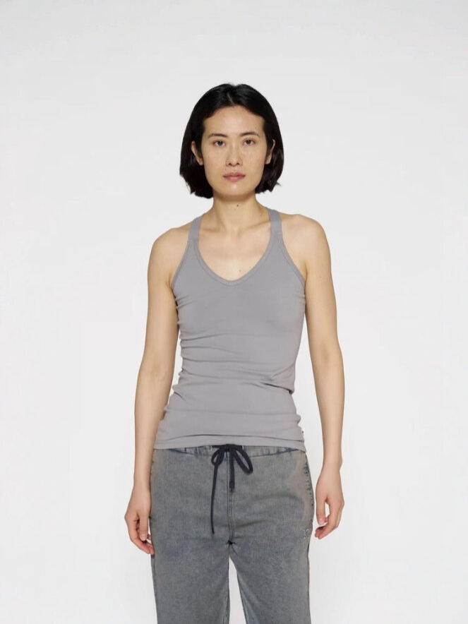 Slim Fit Singlet Top mit im Rücken gekreuzten Trägern, gefertigt aus Jersey aus GOTS-zertifizierter Bio-Baumwolle. Mit Vintage-Finish am Halsausschnitt und einem applizierten Mini-Stripes-Logo am Rücken.