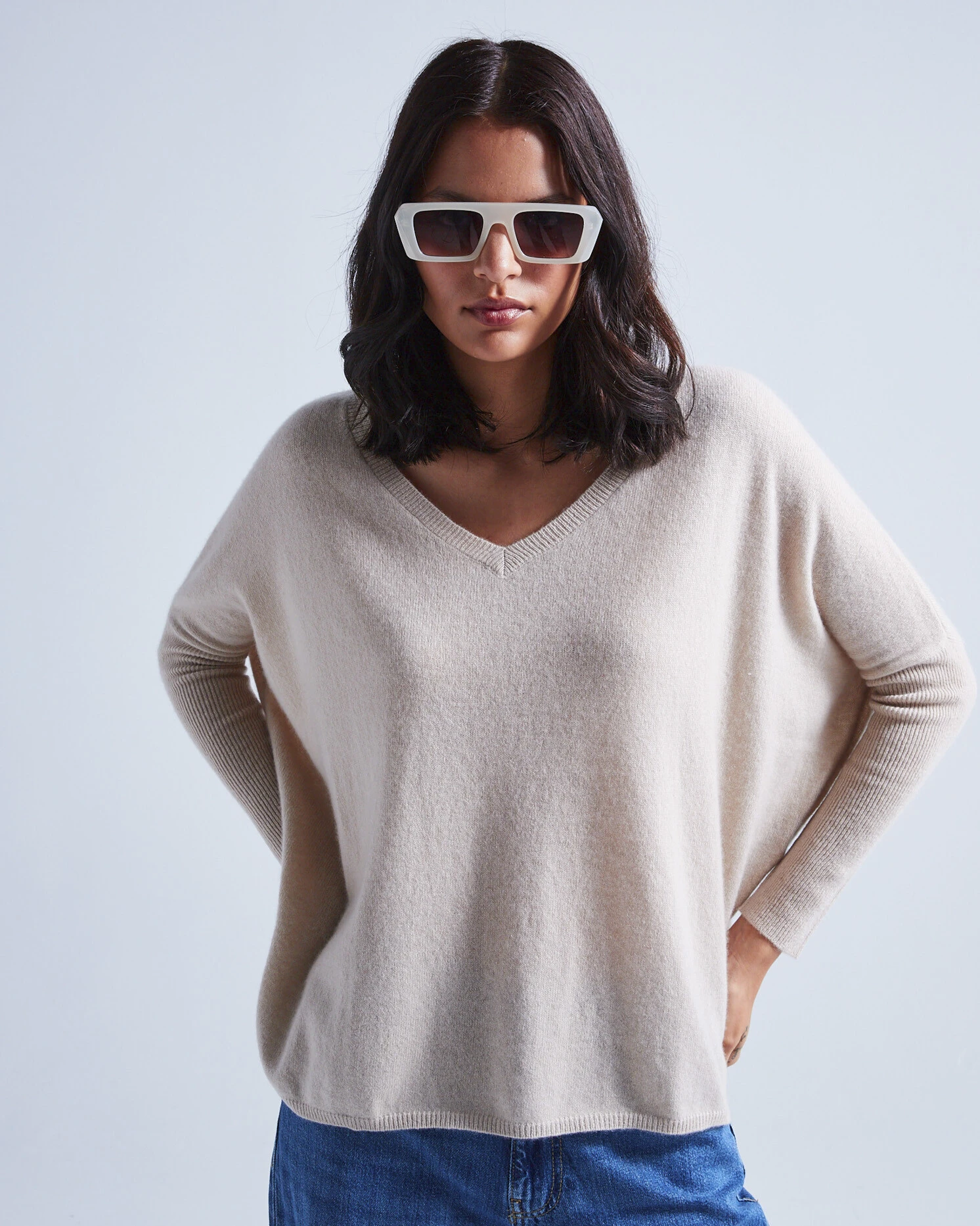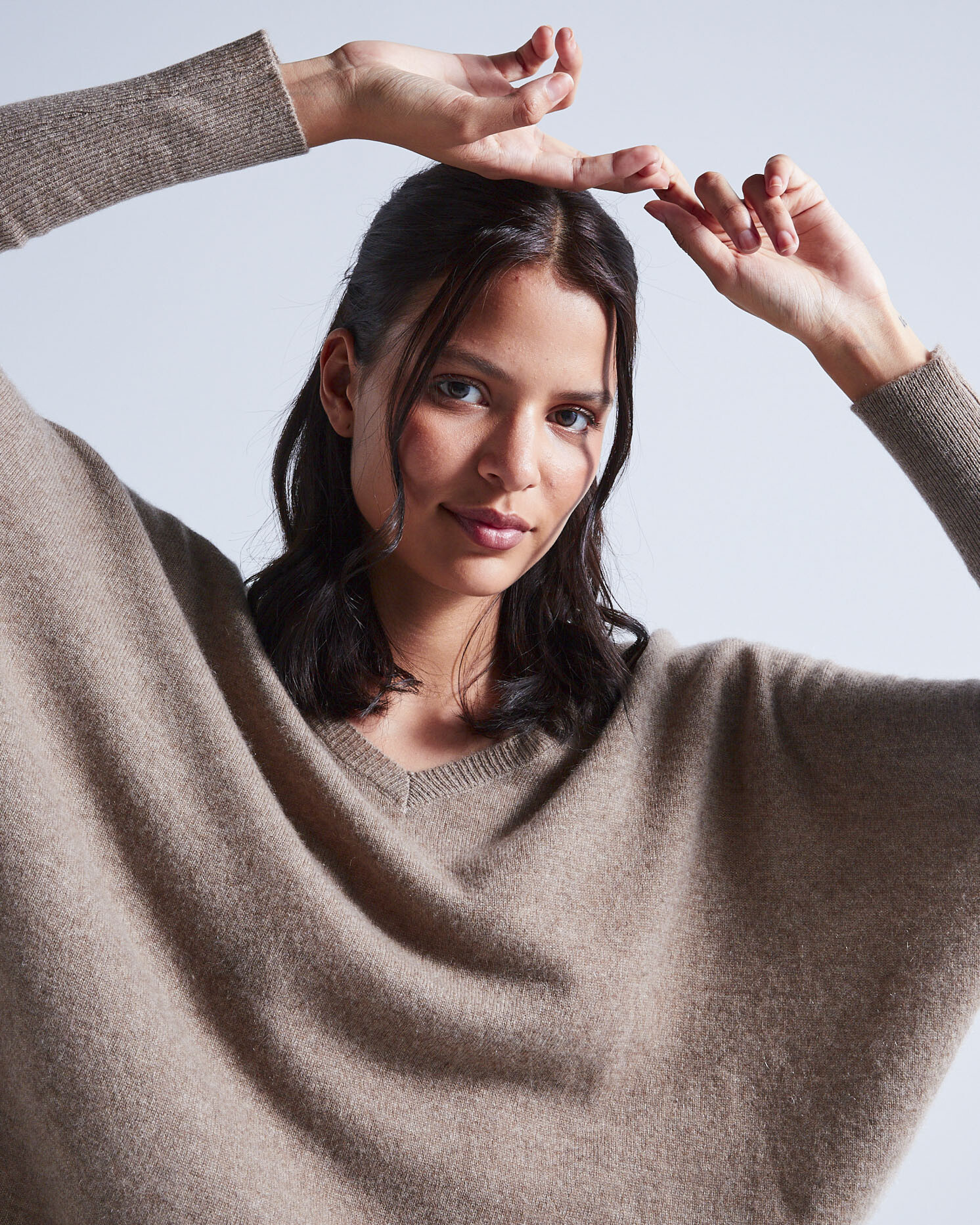 Cashmere-Poncho-Pullover für Damen mit V-Ausschnitt
